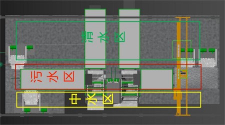 四合一集水平臺污水處理系統(tǒng),功能區(qū)域劃分,內(nèi)部循環(huán)處理, 中水回用,每噸砂石僅補充水0.02t。當原料含泥量≤15%以內(nèi)不用絮凝劑。